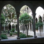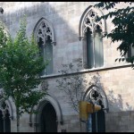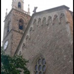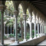 El mestre d’obres Jeroni Granell i Mundet traslladà a la trama de l’Eixample barcelonès l’església (1871) i el claustre (1888) del que havia estat convent de monges Comendadores de Santiago, comunitat instal·lada des del 1293 al recinte format pels actuals carrer Jonqueres, Via Laietana i plaça Urquinaona, on es construí, sembla que al primer quart del segle XV (tot i que Cirici opina que seria entre 1293 i 1300) un temple gòtic consagrat el 1448. És de nau única amb absis poligonal, coberta amb sis trams de voltes d’ogives amb nervis penjats sobre mènsules, sense pilastres que els recullin i que separin els quatre parells de capelles, obertes així en un mur continu. El claustre, que allotja alguns sepulcres dels segles XIV i XV, té una galeria baixa datable a principi del XV, d’arcs apuntats sobre columnes tetralobades, amb àbacs ornats amb flors i escuts heràldics, i una galeria alta de la segona meitat del mateix segle, en què les columnes són octogonals.